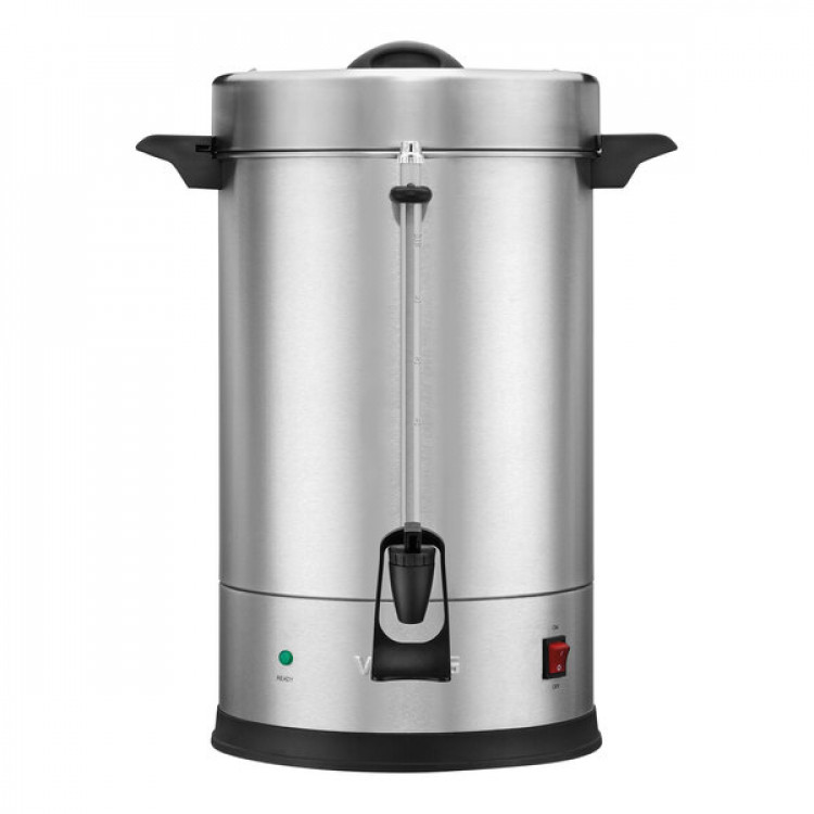 These percolator coffee urns are designed for large events, with dual, commercial-grade heaters. One heater ensures that the brewing temperature remains at 200 degrees Fahrenheit, while the second heater keeps the coffee warm so it dispenses at approximately 185 degrees Fahrenheit. Together, the heaters help produce deliciously piping hot coffee to help awaken and revive your guests.