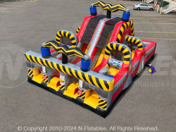 This High Voltage obstacle is a challenge designed with smaller patrons in mind but good for the big kids as well. It features tunnels, tackle dummies, squeeze plays, a climbing wall and slide. As an added bonus, it only requires 1 operator since its 180° design allows patrons to enter and exit on the same side of the unit.